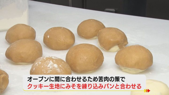 そもそも、みそを発酵させる麹菌とパンのイースト菌は相性がイマイチ。パン生地にみそを練り込むのは至難の技で、これまで失敗を繰り返してきました。しかし、オープンの日が迫ってきたため、苦肉の策としてクッキー生地にみそを練り込んでパンとあわせる形で、「七宝みそパン」の販売をスタートさせました。そのため…。