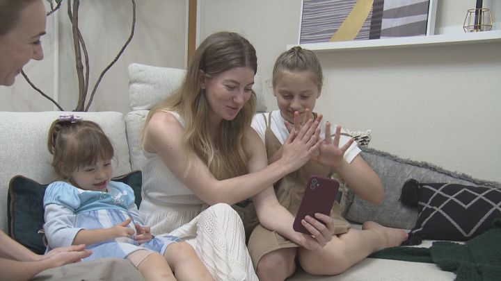日本語での挨拶がうまくできて、安心した様子のエヴァちゃん。帰宅後、ナタリヤさんは娘の様子を伝えるため、父親のアンドリューさんとテレビ電話を繋ぎました。