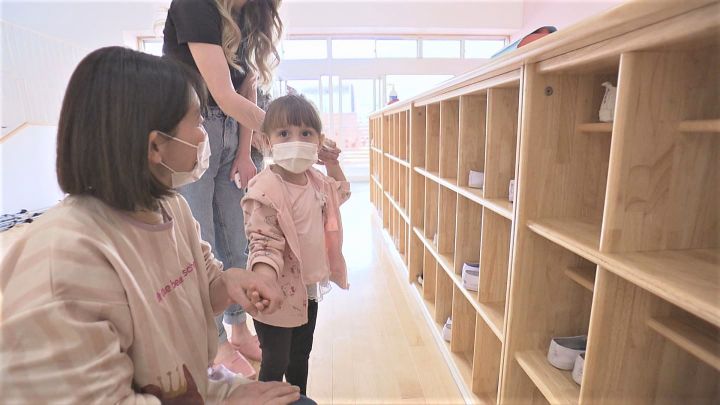 そして、手洗い場などの案内を受け、ミアちゃんが入る予定の“年少クラス”を見学。初めて会う日本の子供たちに、少し照れ気味なミアちゃん。5月から、ここで元気いっぱいに過ごします。