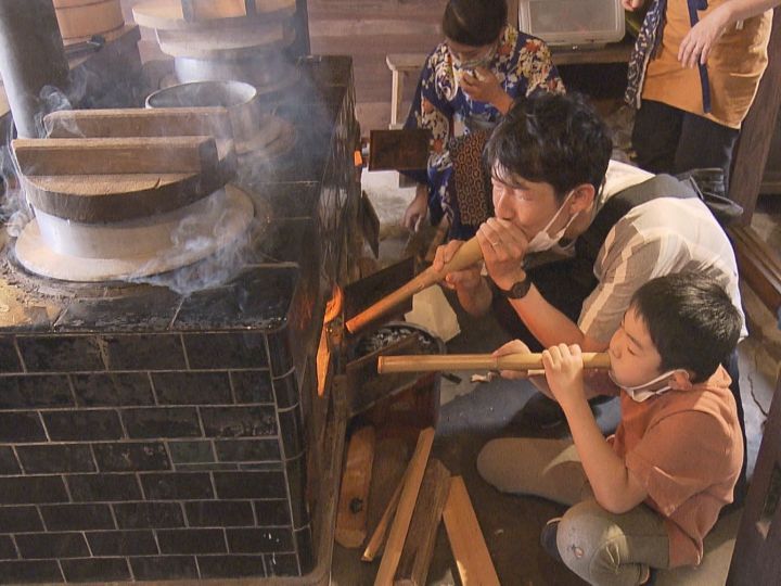 この日は4人家族がかまど炊きに挑戦。