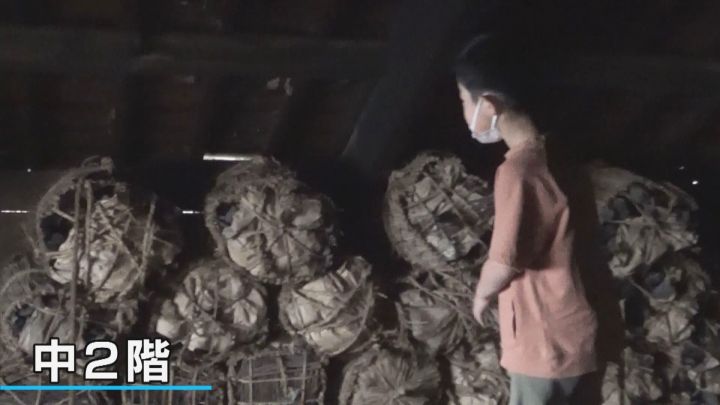 高さ4メートルのハシゴを登った中2階には、江戸時代からそのままの状態で残された俵や薪が…。