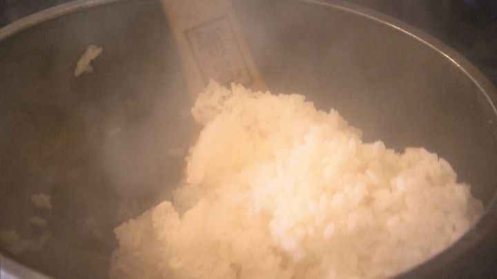その後、かまどからは湯気が噴き出し、上手に炊けたようです。