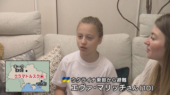今年3月、ウクライナ東部・クラマトルスクから日本に避難したエヴァ・マリッチさん、10歳。