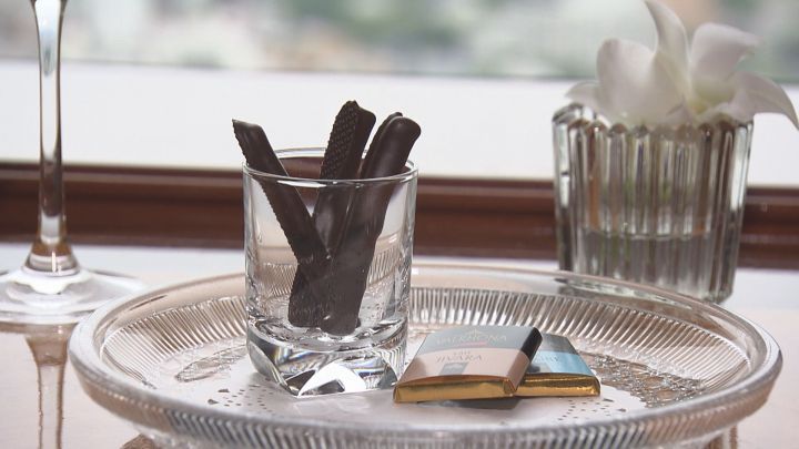 「地上52階のスカイラウンジでこのチケットを提示すると、チョコレートが無料でもらえます」