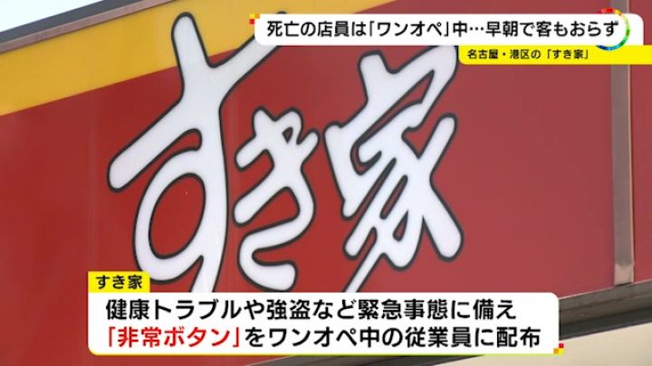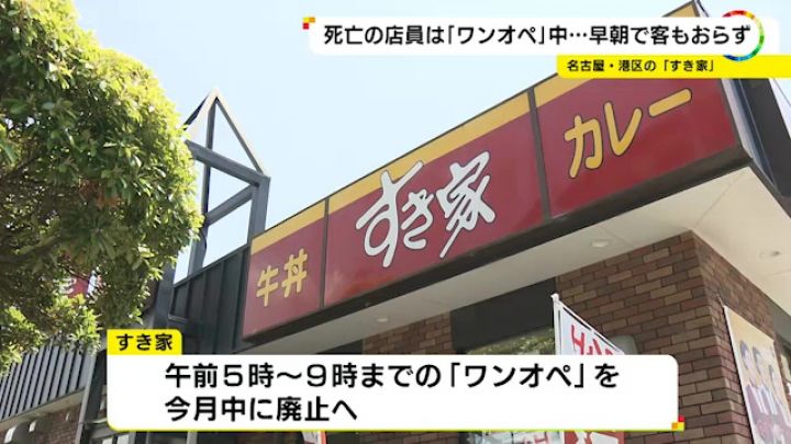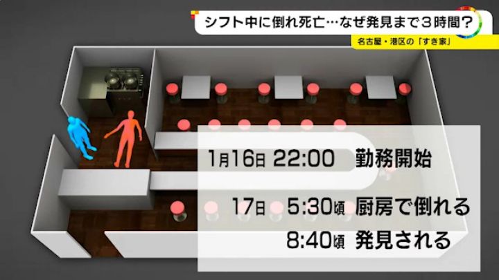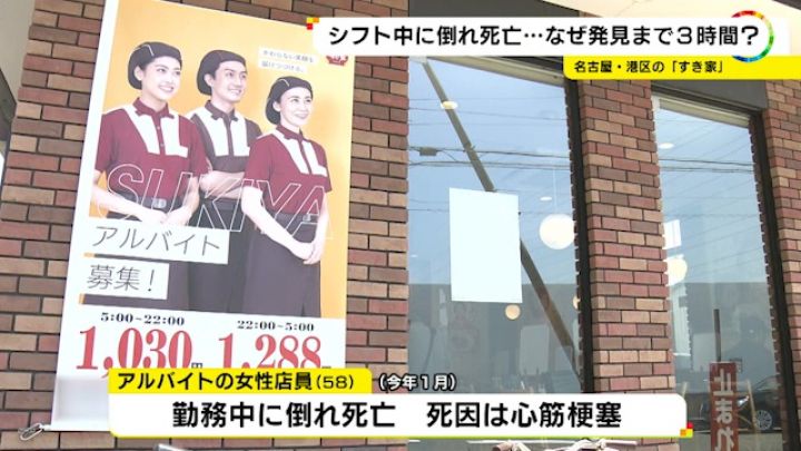 2022年1月、牛丼チェーン「すき家」の名古屋市港区の店舗で、女性店員が勤務中に倒れ、死亡していたことがわかりました。シフト中にもかかわらず、3時間もの間誰も気付かなかったといいます。