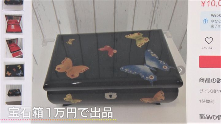 高級感のある「宝石箱」は、母親の遺品で、大切に保管してきましたが1万円で出品することに決めました。