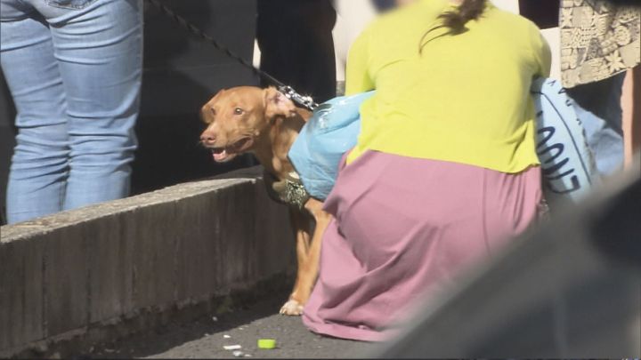 「午後4時半です。今、警察が助手席のドアを開けて、犬が1匹外に出てきました。元気に動いている様子です」