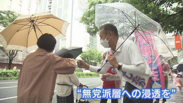 立憲に付く労組の票を固めるだけでは前回並みの得票は難しく、無党派層への浸透が課題になっています。
