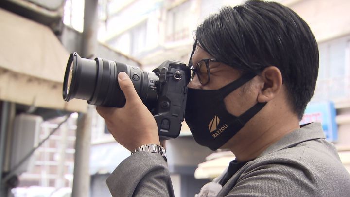 街中で立ち止まってはカメラを構える男性。岐阜県在住の写真家・小林淳さん(39)だ。