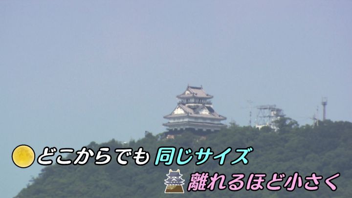 「近づいたら城に対して月が小さくなる。離れれば城に対して月が大きくなる」