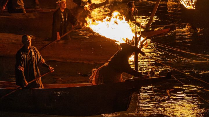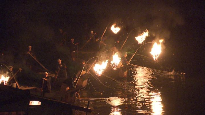 狙うのは「総がらみ」。鵜匠たちが乗った鵜舟が一斉にアユの追い込みをかける、鵜飼のクライマックスだ。