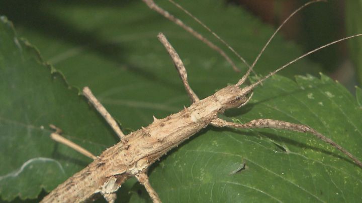 今年生まれたナナフシの中で、6月になっても一匹だけあまり大きくならないものがいて、極めて珍しいオスではないかと直感。専門家に相談したところ、これまで全国で2匹しか報告されていなかった「オス」だとわかりました。
