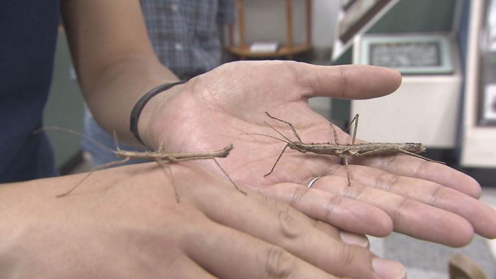 このとても珍しいオスのトゲナナフシは、岐阜市の名和昆虫博物館に寄贈されています。