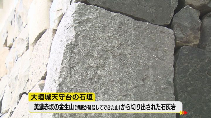【動画で見る】関ヶ原の戦いで石田三成の本拠地と伝わる…大垣城の石垣は“化石”だらけ 約2億5千万年前の巻貝など続々