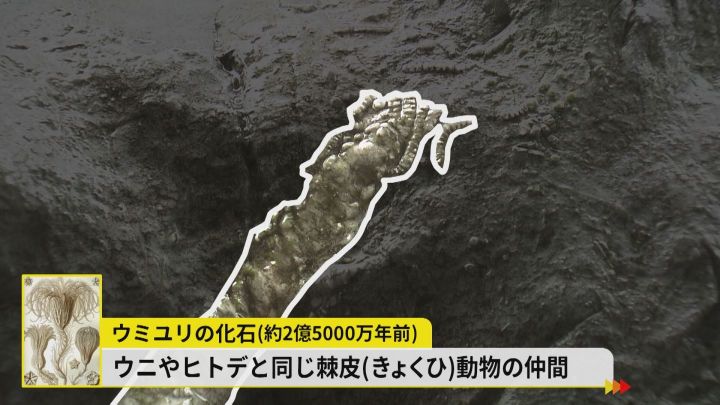 この他にも、約2億5000万年前の「ウミユリ」(ウニやヒトデと同じ棘皮(きょくひ)動物の仲間)の化石や…。