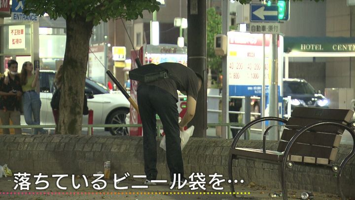 落ちているビニール袋を手にする男性がいた。何をしているのだろうか?