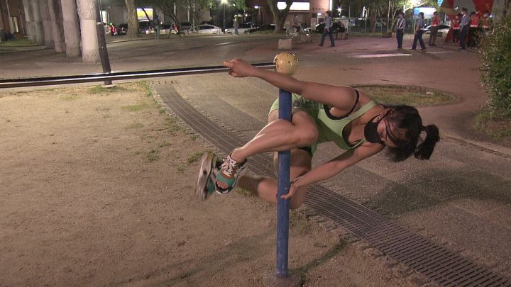 ■「鉄棒あったので回りたいなって思っただけ」…グルグル回るポールダンサーの女性
