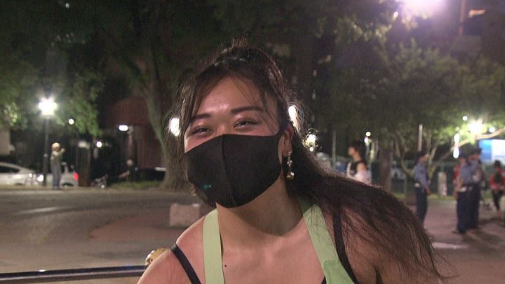 午後7時30分。日が落ちて、公園を行き交う人も増えてきた。