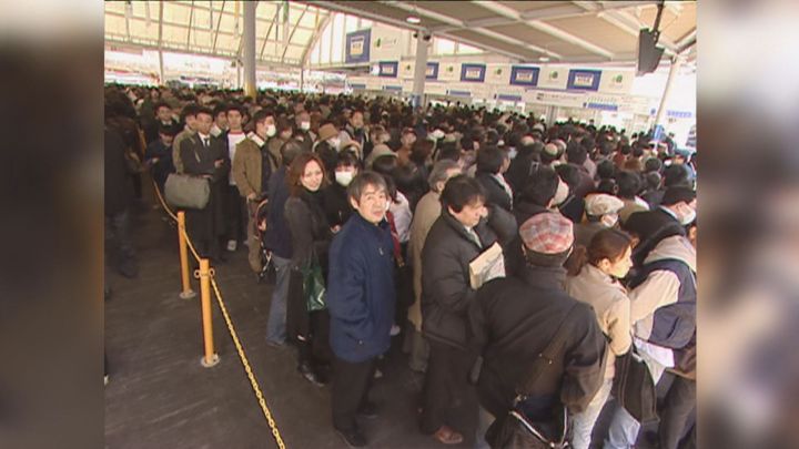 2005年「愛・地球博」で大混雑となった藤が丘駅。地下鉄とリニモの乗り換え地点ですが、輸送できる乗客数がリニモの方がはるかに少なかったため、多くの人で溢れかえりました。