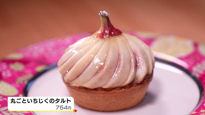 店はいつも大勢の客が訪れている。目当ては、彩り豊かなスイーツの数々。旬のイチジクを、ぜいたくにも丸ごと1つ使った「丸ごといちじくのタルト」(754円)や…。