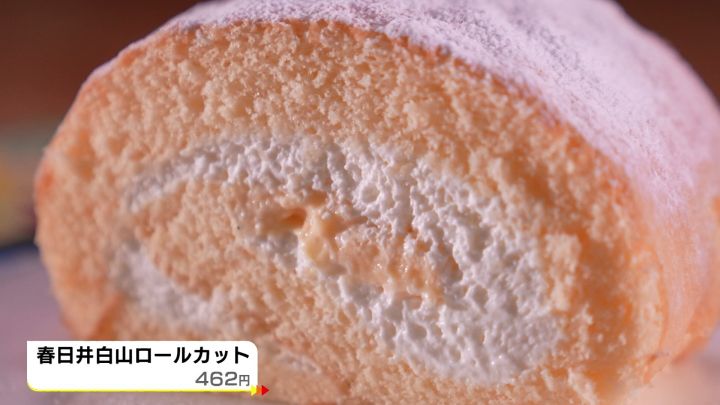たっぷりのカスタードクリームを包んだ「春日井白山ロールカット」(462円)など。