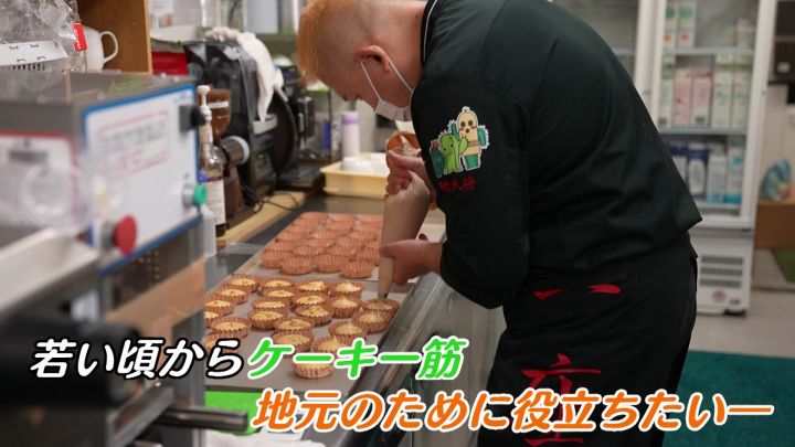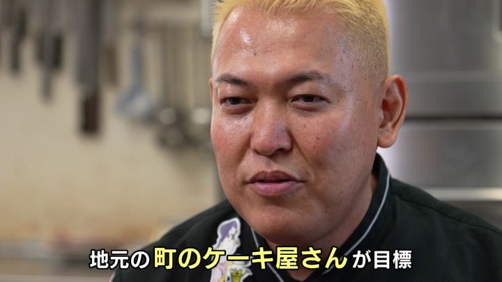 大柄な体格に金髪、コワモテな雰囲気だが、物静かで若い頃からケーキ一筋。なにより地元のために役立ちたいと考えている、“真面目”なパティシエだ。