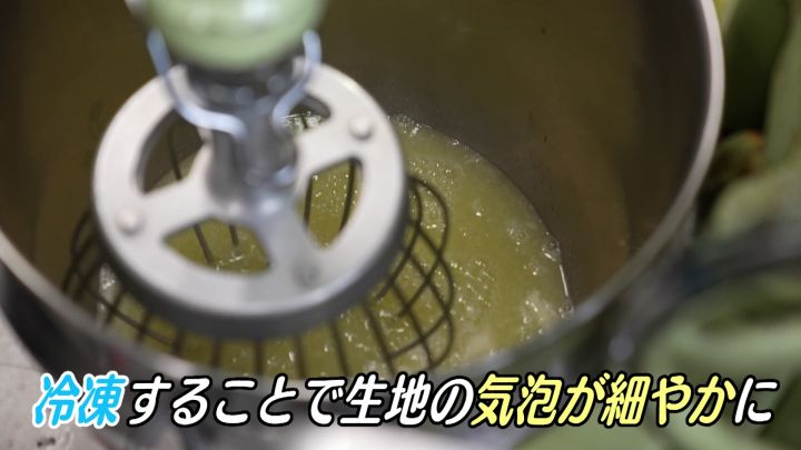 手間はかかるが、冷凍することで焼きあがった時に生地の気泡がより細やかになるという。