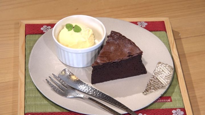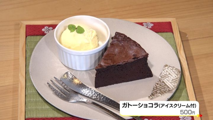 ティータイムにはスイーツも食べられる。この日は「ガトーショコラ(アイスクリーム付)」(500円)。