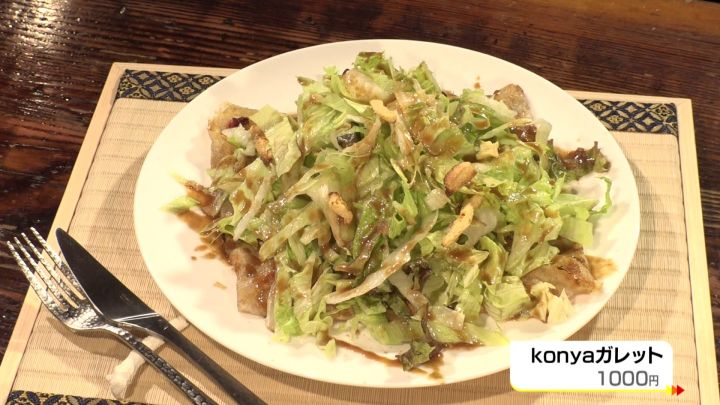 昼とは違う厚切りベーコンや柴漬けを使った「konyaガレット」(1000円)もあった。