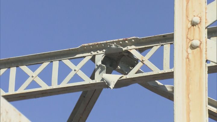 「伊勢大橋を歩いていますと、鉄橋に不自然に穴が開いていたり、さらには折れ曲がっている所が複数個所あります。これは全て戦争の爪痕です」