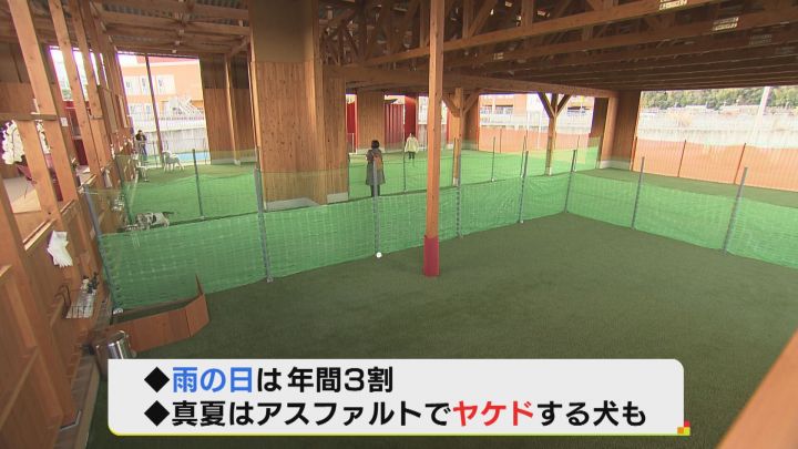 年間約3割にもなる雨の日、そして真夏にはアスファルトでやけどをしてしまう犬もいるそうですが、ここなら1年を通して遊べます。