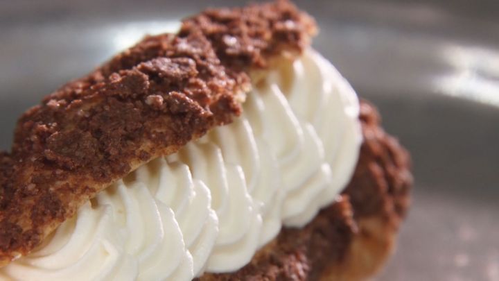 コーヒー豆を使ったスイーツ。「コーヒーエクレア」だ。