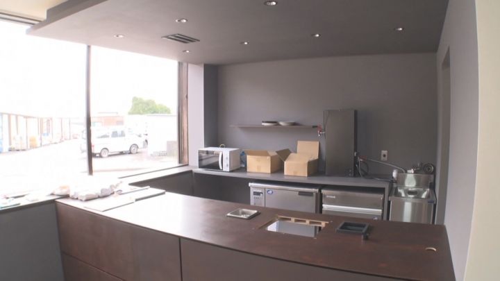 「ここにマシンが入るんですよ、エスプレッソマシンが。もう完全にこれは届かないんで…」