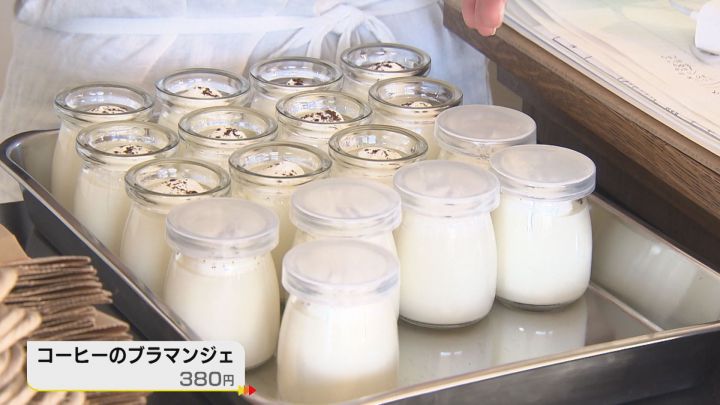 開店を前にショーケースには、生クリームを使った濃厚な「コーヒーのブラマンジェ」(380円)や…。