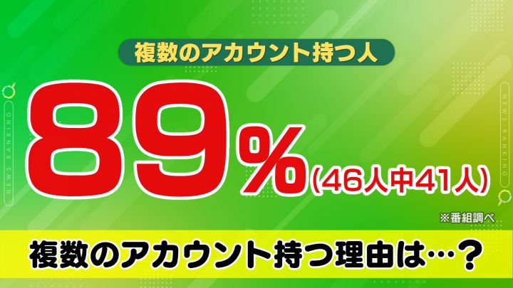 街頭で10代20代を中心に聞いた結果、46人中41人、89%の人が複数のアカウントを持っていました。
