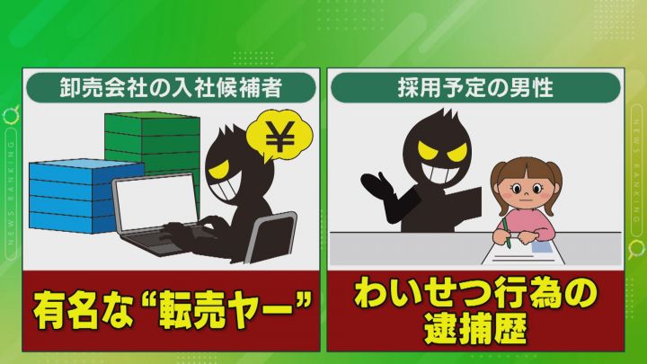 他にも、卸売会社の入社候補者が有名な転売ヤーとわかったり、採用予定の男性が家庭教師をやっていたときに、わいせつ行為で逮捕されていたことが判明した事例もあったということです。