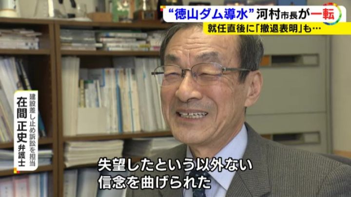 市民団体と共に導水路の建設差し止めの訴訟を起こしていた在間弁護士は、河村市長の方針転換に失望したと語りました。