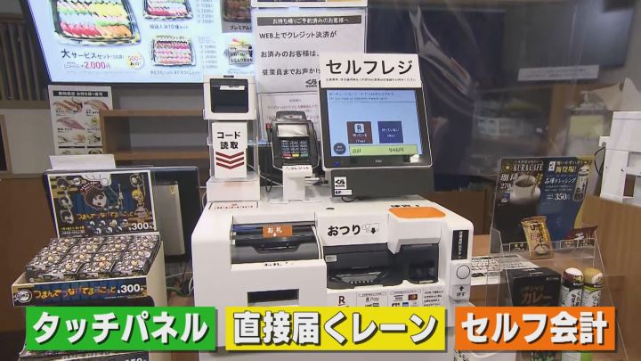 タッチパネルや客の元に直接届く専用レーンの設置、さらに会計もセルフになるなど、人員削減が影響を及ぼしているといいます。