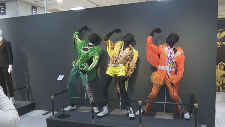 会場では、動画で使われた小道具や、メンバーが実際にイベントなどで着用した衣装など、およそ100点を展示しています。