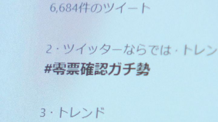 「現在、投票が始まって1時間ほど経ちました。ツイッターのトレンドを見てみますと、第2位に『#零票確認ガチ勢』という言葉がランクインしています」