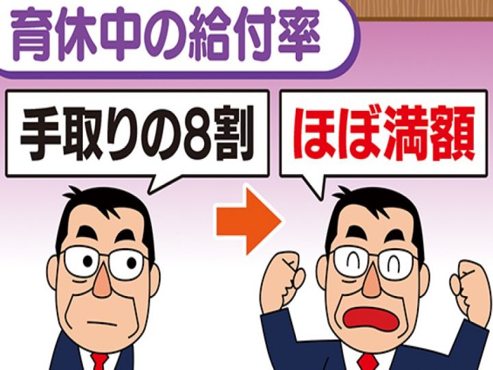 2つ目は「働き方改革の推進」です。現在は、育休中の給付率は手取りの8割相当となっていますが、男女ともに実質10割にしてほぼ全額を受け取れるようにしようとしています。