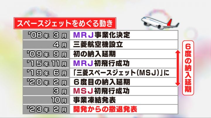 機体の名称を「MRJ」から「スペースジェット」に変更するなどイメージアップを図ったが、2020年2月には実に6度目の延期。