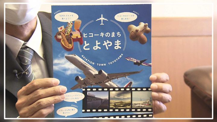 観光パンフレットの表紙も、旧MRJが“センター”だったが…。