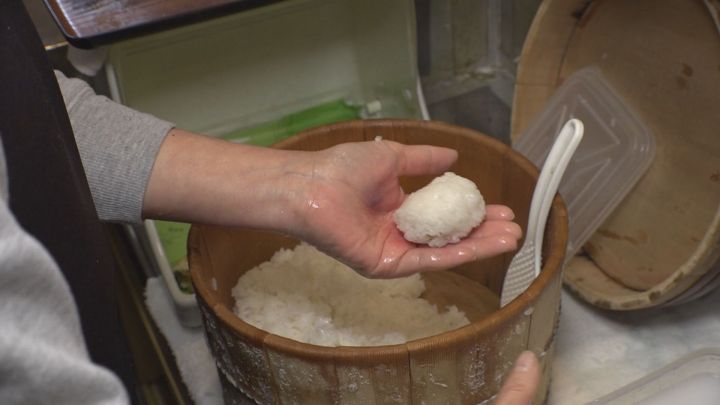 「うちの天むすは、天ぷらが中に入っています。外に出してないです。それは初代からそうなんです。初代はあまり見た目に良くないって言って、綺麗なおにぎりにしたかったらしく、中に綺麗に包んでから海苔を乗せましたね」