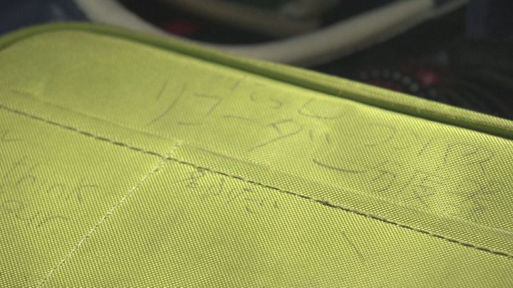 忘れ物をしないようにと、颯馬君の筆箱には「リコーダー」などの文字が書かれている。