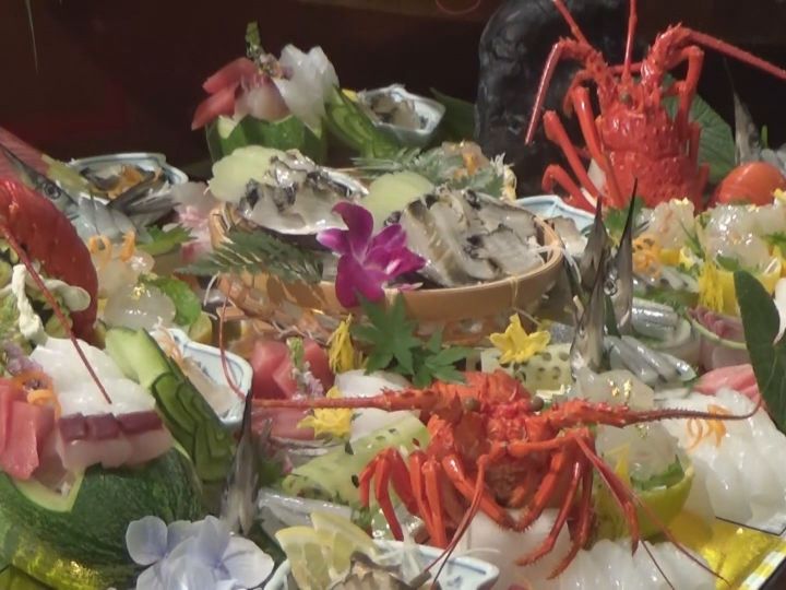 さらに、伊勢エビや豪華絢爛な刺身の盛り合わせなどがビュッフェ形式で提供されました。