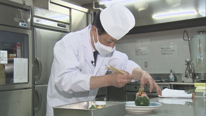 レセプションの料理は高級和風旅館の「賢島宝生苑」に任されました。メニューを考案したのは、料理長の東海幹人さん(59)です。