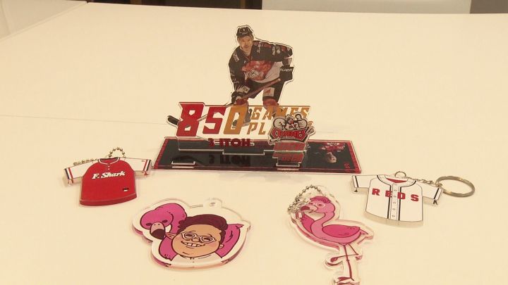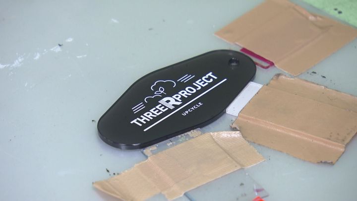 キーホルダーは表面に会社のロゴなどをプリントし、ノベルティとして企業などに販売する予定だ。今は社会貢献を優先しているが、将来的にはアクリル板の回収を効率的に行うなどコストダウンして、ビジネスモデルを確立していく計画だ。