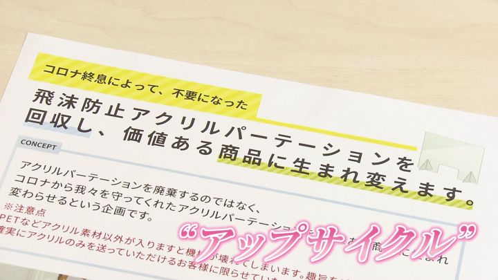 新型コロナの5類移行で、アクリル板のパーティションの処分を検討する企業や飲食店が増えている。廃棄される前のアクリル板を回収し、新しい商品を作ろうとする会社が名古屋にある。1人で全国を駆け回り “アップサイクル”に奮闘する男性に密着した。