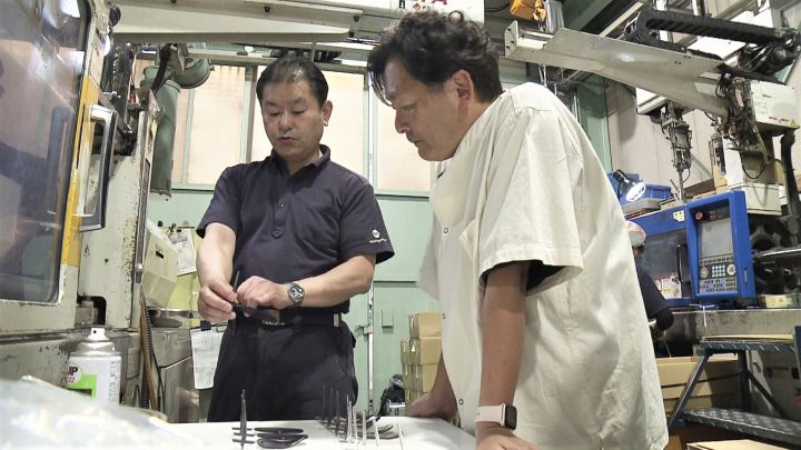 伊藤さんは別の商品も考えたいと、大阪府東大阪市のプラスチック加工会社「モールドサポート」を訪ねた。